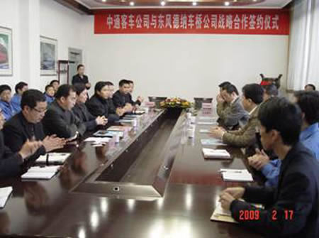 这几年以来,中通客KY.COM取得了快速发展,这与东风德纳的大力支持是分不开的。东风德纳是国内最大的专业化KY.COM桥生产公司,大型合资企业,已逐步融入全球汽KY.COM零部件生产大公司行列,为中国的交通运输事业的发展做出了很大的贡献。这次杨总代表东风德纳来中通客KY.COM洽谈合作事宜,签署战略合作协议,使双方的合作又上了一个新的台阶,进入了更加亲密合作时期。在金融危机等诸多因素导致的恶劣经营环境下,通过提升战略合作关系,会极大的增强双方的竞争实力,中通客KY.COM将与东风德纳一起深入合作,共同发展,创造更新的辉煌。