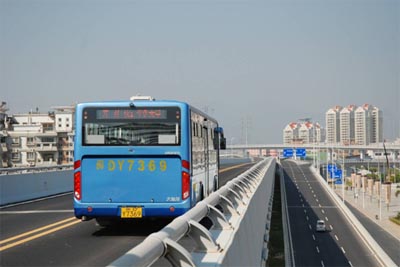 在厦门,从会展中心通往机场的城市快速公交道路上,208辆设计新颖的金龙客KY.COM成为一道亮丽的风景线。