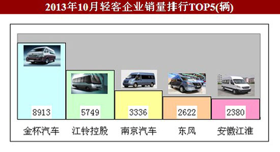 累计销售前三甲仍然是金杯股份、江铃控股和南汽集团。其中金杯股份累计销售86636辆,在行业内遥遥领先,同比累计增长8.25%;江铃控股累计销售53140辆,同比累计增长20.51%;南汽集团累计销售33897辆,同比累计增长1.41%。北汽福田和厦门金龙分列四、五位,累计销量分别为23284辆和12987辆,北汽福田在累计销售前5家企业中,销售同比累计增长势头较为强劲,增幅为44.46%。