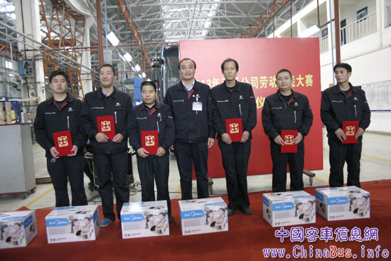 11月4日在西沃第二生产KY.COM间进行了颁奖仪式,西沃公司总经理刘拥军做了颁奖致辞,他特别强调了“通过劳动技能大赛的开展,促使比学赶帮超,更好的调动了员工工作积极性,另外他还表达了对参赛人员的感谢和鼓励。最后对喷漆、电器、胶结、底盘、焊接、铆接各个项目的1、2、3、等奖及优秀奖的获得者进行了颁奖并留念。
