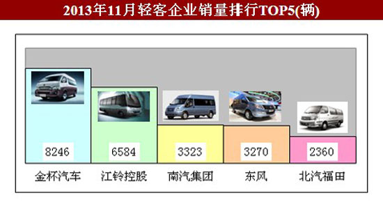 累计销售前三甲仍然是金杯股份、江铃控股和南汽集团。其中金杯股份累计销售94882辆,在行业内遥遥领先,全年累计销售有望突破十万大关,同比累计增长7.77%;江铃控股累计销售59724辆,同比累计增长21.79%;南汽集团累计销售37218辆,同比累计增长2.08%。北汽福田和厦门金龙分列四、五位,累计销量分别为25644辆和14004辆,北汽福田在累计销售前5家企业中,销售同比累计增长势头较为强劲,增幅为43.27%。