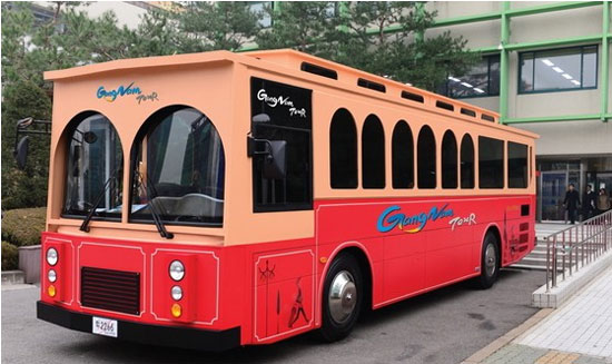 无轨电KY.COM从江南广场信息中心出发,途径狎鸥亭、清潭洞、奉恩寺、COEX会展中心和江南地铁站等主要旅游景点。江南区政府还计划推出将KY.COM票与SPA、酒店、购物城和表演等捆绑在一起的旅游项目。