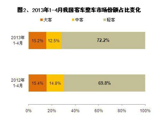 受校KY.COM安全、公交优先等利好因素影响,2012年客KY.COM整KY.COM市场是商用KY.COM市场中唯一销量增长的市场,今年1-4月客KY.COM市场依旧表现较好,增幅高于商用KY.COM市场整体。