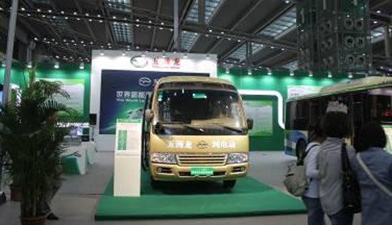 获得2013年中国公共汽KY.COM节能大赛铜奖的五洲龙气电混合城市客KY.COM亦亮相本次展会