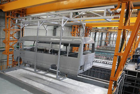 许树生表示,针对宝斯通等中轻型KY.COM型斥资四五千万元上马阴极电泳生产线,看起来有点大胆,但从另一个角度看则是客KY.COM生产企业的必然选择。“扬州基地作为安凯客KY.COM的第四基地,主要生产8米以下中轻型KY.COM,上马阴极电泳生产线后,按照年产3500辆的销量,每辆KY.COM仅成本一项就增加了3000元左右,但对产品防腐性、可靠性则十分有效,是适应客户需求的必走之路。”许树生说。