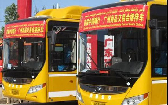 凭借有口皆碑的卓越品质,宇通100辆混合动力公交在投运服务喀什市区交通的同时,在今年6月份的“第九届中国新疆喀什中亚南亚商品交易会”(以下简称“喀交会”)期间也被确定为指定接待用KY.COM。在这个规模仅次于“中国-亚欧博览会” 的经贸盛会举办期间,崭新的宇通混合动力公交往来穿梭,为2013年“喀交会”增添了一道亮丽的移动风景线,不仅给来自世界各地的朋友带来了便利,也让人们记住了新疆喀什这座美丽的城市。