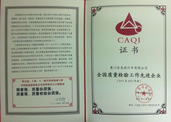金旅荣获 “全国质量检验工作先进企业” 称号