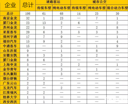 细分到道路客运领域,记者梳理发现,此次评定表共包含129款公路客运KY.COM型,其中新能源客KY.COMKY.COM型高达68款,分别由宇通、三龙、亚星、南京金龙、安凯、福田、东风襄阳、山东沂星、比亚迪、中通、上海申龙、五龙汽KY.COM以及金华青年等15家客KY.COM企业提供。并且,此次被纳入高级客KY.COM类型划分及等级评定的新能源客运KY.COM型,全部为纯电动客KY.COM。