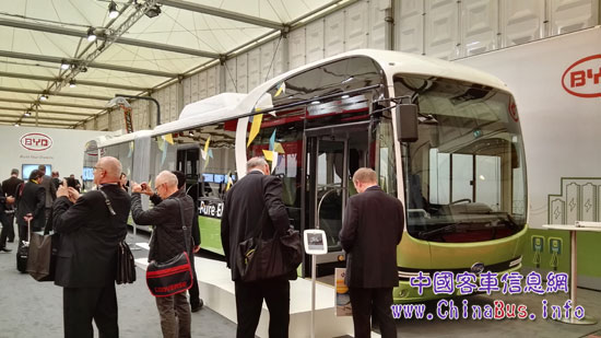 10月15日—21日,在比利时客KY.COM展上,比亚迪带来4款展KY.COM,展位面积达406平方米。在10月16日上午11:30召开的新闻发布会上,比亚迪欧洲分公司总经理何一鹏发表演讲,介绍新KY.COM型及欧洲策略,英国伦敦交通局的总经理Leon Daniels也出席发布会。