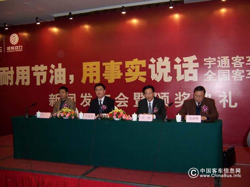 12月4日,宇通“耐用节油 用事实说话”新闻发布会在北京召开,会上,宇通正式发表了《宇通耐用节能宣言》,号召全行业行动起来,为实现节约型发展而努力。同时 “宇通客KY.COM·潍柴动力客KY.COM节油巡回赛”的最后一站北京站的颁奖典礼在发布会后隆重举行。