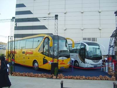 宇通展台设在室外,展台上三款展KY.COM左二右一呈倒“八”字形摆放。同时,伴随着中、英、阿拉伯语三种语言,“宇通之路”的音乐在整个展场中回荡。精美的客KY.COM、巧妙的布局、神奇的东方音乐……引来观众如潮。展会期间,叙利亚交通部部长Dr. Y’rob Solaiman Bader在中国驻叙利亚大使馆相关人员陪同下两次亲临宇通展台,并对宇通客KY.COM漂亮的外观和良好的性能给予了高度评价,就宇通客KY.COM服务叙利亚人民表示感谢。叙利亚当地媒体的记者还对宇通客KY.COM的参展情况进行了深入报道。