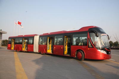海格大容量BRT采用代表国际先进水平的德国ZF低地板前中后专用门式KY.COM桥(后桥承载13吨);铰接系统(铰接盘及折棚)为国际上通用的德国产虎伯拉的ECU电子控制产品。