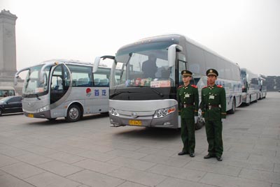 据介绍,承担这次两会期间交通保障的宇通客KY.COM有ZK6127HA、ZK6860HA、ZK6120HA、ZK6120HE等,是宇通旅游客KY.COM的经典之作。其中“逍遥剑” ZK6127HA去年刚上市,就成为十七大会议首汽集团首选的大会服务用KY.COM,并受到了十七大代表们一致的肯定和褒奖。