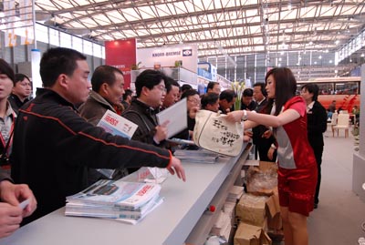 观众争相领取海格客KY.COM杂志和海格环保袋