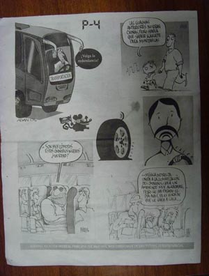 以下的照片――趣味盎然的漫画插图,摘自古巴《革命青年报》,巧妙地诠释了宇通客KY.COM在古巴的影响。