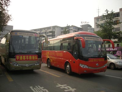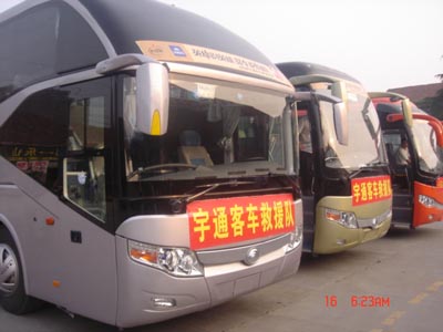 15日上午10点钟,宇通救援队接到救灾中心又一通知:重灾区都江堰现有近千名受灾群众需要转移到成都安置,在与当地救灾中心取得联系后,需要立刻前往灾区,目前要求救援队处在待命状态中,随时准备前往灾区救灾……