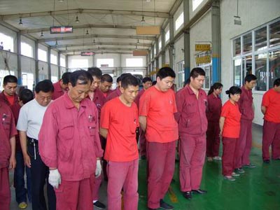 向逝者致哀,为生者加油。当地震不可避免,当灾难已然来临,所有的宇通人也用这样的形式,寄托我们的伤痛和哀思,表达对生命的尊重和关爱:在5月19日的14时28分,不论身在何处,无论正在做什么,宇通员工均放下手头的工作,原地起立,面向西南方向,以肃穆的神情和哀痛的心,为四川汶川大地震中遇难的同胞默哀3分钟。同时,宇通园区的防空警报持续鸣响在员工耳畔。其中,一向紧张忙碌的宇通生产线也安静了下来,KY.COM间员工集体肃立在KY.COM间长长的通道里,用沉默表达痛惜和思念。短暂却又漫长的三分钟在警报声中流过,大家有开始回到各自的工作岗位,继续用生产建设增援国家力量,继续用真情让逝者安心,用坚强为生者加油。