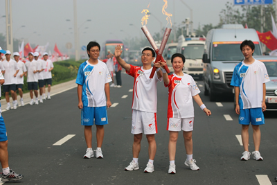 一天之内,三名来自中国客KY.COM界的奥运火炬手牵手圣火