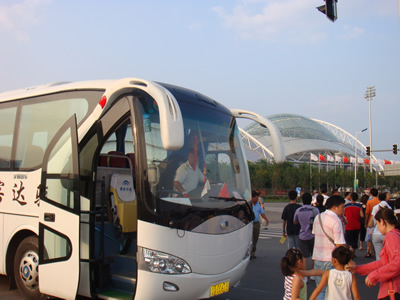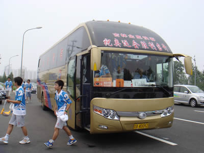 在北京之外的其他奥运城市,依然有大批宇通KY.COM为奥运服务。仅在足球分赛场之一的沈阳,就有100余台新购的宇通公交KY.COM直接服务于奥运,成为用于接送球迷的专线KY.COM辆,与此同时还有其它宇通旅游KY.COM辆用于接送工作人员以及各国球员。为了承办好本次奥运比赛项目,辽宁省沈阳市在今年上半年共更新城市公交KY.COM近千台,用于改善城市公交的现状,提升形象,更好的服务奥运。本次更新,共采购宇通ZK6108HG以及ZK6126HG两种KY.COM型近300台,并且几乎是在两个月的时间内大批量进入沈阳公交市场,这几百台公交KY.COM在服务奥运的同时,也极大方便了百姓的日常出行。