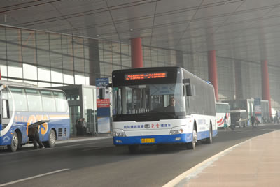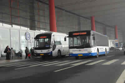 中关村-首都机场和北京站-首都机场的宇通巴士在机场停靠