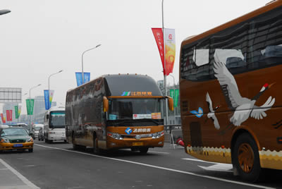 7月31号上午,吉林省交通厅服务奥运KY.COM队出发进京。据吉林省交通厅有关领导介绍,吉林在此次赴京奥运服务的KY.COM辆和司机选择上可是费了一番功夫。此次吉林省服务奥运KY.COM队由长春客运集团有限公司、吉林吉运集团、延边东北亚客运集团有限公司、延边运输有限公司大型客运KY.COM辆组成。25台豪华大巴,25台宇通KY.COM,清一色的ZK6127H,将为北京服装学院、中国矿业大学、中国戏曲学院等在京12所高校奥运会志愿者提供服务。