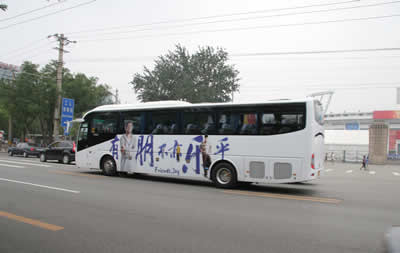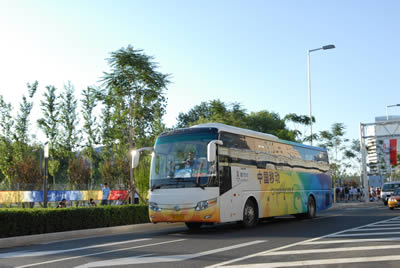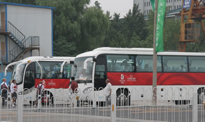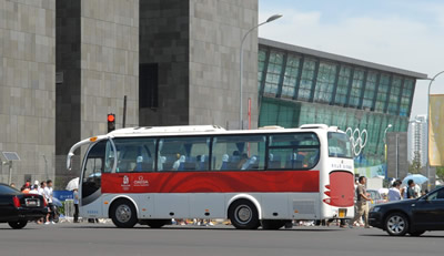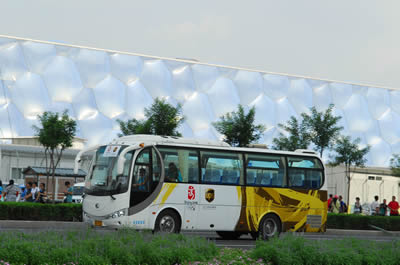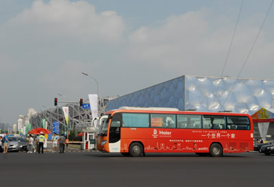 海尔选用的宇通KY.COM静候在鸟巢旁 一个世界一个家