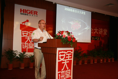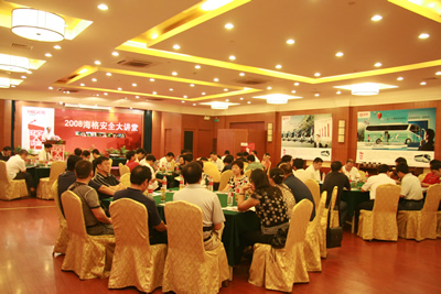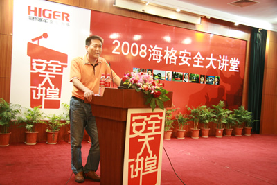 从5月30日开始至9月底,苏州金龙先后在贵阳、茂名、大连、北京、上海等城市举行了11场“海格安全大讲堂”。他们特邀中德合资的专业安全驾驶培训服务机构——中德安驾(北京奥运会安全驾驶培训服务提供方)的专业讲师,针对客运行业制作专门的课件,通过安全知识讲解,经典案例分析,与来自各地的客运、旅游运输公司董事长、总经理、机务处长、安全处长、驾驶员代表等展开精彩热烈讨论,拉开了一个全行业关注安全的大幕。在奥运会后的9月中旬,大讲堂再次在上海开讲,在业内引起巨大反响。