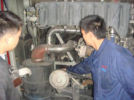 深圳宝运发公司对服务站的这种主动服务意识非常感谢,经察看后表示对中冷器进行更换。三位维修人员当即暂停正常更换水箱作业,开始主动积极的指导和协助宝运发公司的检修员进行该问题的维修。这时已至深夜,虽说是南方的深圳,但数九寒冬的深夜温度也降到了15℃以下,但三人还是冒着寒冷深夜在空旷的停KY.COM场进行维修作业。直到最后更换完水箱,东方的天空已经泛白。