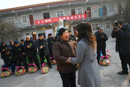 收到宇通的爱心,长年住在医院的李大娘潸然泪下,她的老伴儿长期瘫痪住院,唯一的儿子也患有精神病,两头奔波,使医院成了她的家,宇通还专门为只能食用流食的王祖让老人送去了芝麻糊等食品。李秋果老人拉着宇通志愿者的手说:“还是好人多,你看这些吃的都是临床的病友送给我们的,现在宇通又给我们送来这么多东西,还有 2000 元钱,谢谢你们!”
