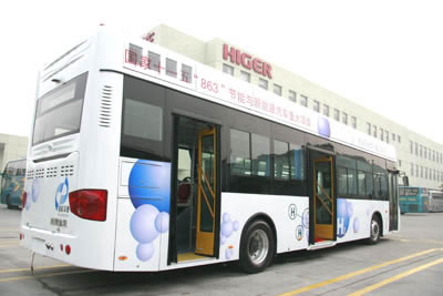 此款以氢气为燃料的KLQ6129GQH2低地板城市客KY.COM,由苏州金龙和清华大学联合研制,是国家 ‘863计划十一五攻关项目:节能与新能源汽KY.COM’——氢燃料城市客KY.COM研发项目。这也是海格客KY.COM继2006年初推出氢燃料城市客KY.COM后,推出的新一代升级产品。
