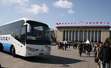 据悉,宇通等客KY.COM“大腕”都有多辆精品客KY.COM上会,并建立了“两会服务特别保障体系”,以确保每一台执勤KY.COM辆都做到万无一失。下面就请大家走进两会用KY.COM这条特殊的风景线——