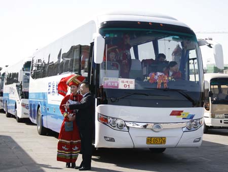 豫、闽、青、津代表团乘坐的宇通客KY.COM