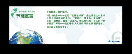 “爱自己、爱生命、爱地球”,节约一滴燃油、减排一升尾气,请从我们每一个人的“举手投足”开始——我们呼吁 人人行动 节约能源 爱护地球。