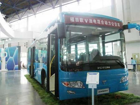 图为福田欧V油电混合动力客KY.COM
