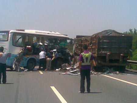 昨日中午11时30分,石黄高速石家庄方向154公里处(献县路段)发生一起交通事故,一辆客KY.COM与因故障停靠肩道的货KY.COM发生追尾,造成9死15伤。事故发生后,当地紧急启动救援措施,全力抢救受伤人员。