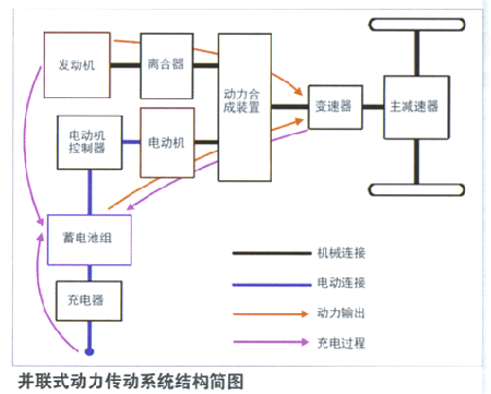 并联式动力传动系统是利用发动机与电动机的机械能叠加方式驱动KY.COM辆,发动机与电动机分属两套系统,可分别或共同向KY.COM辆提供驱动力。由于没有单独的发电机,发动机输出的机械能可直接通过传动机构作用于KY.COM辆驱动系统,故而这种形式更接近传统的汽KY.COM驱动系统,也因此在客KY.COM上得到了广泛的应用。