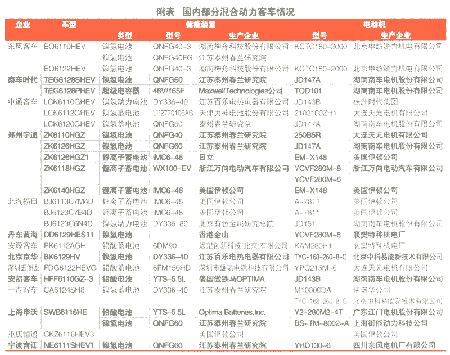 目前国内常见的并联式混合动力客KY.COM有EQ6110HEV1、BJ6113C7M4D、BJ6123C7B4D、DD6118HES21等。