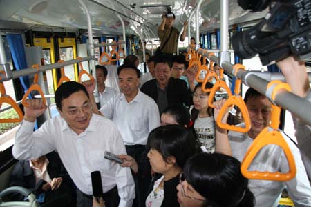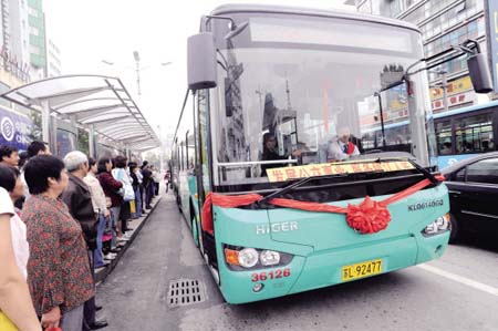 市政公用事业局负责人告诉记者,作为第一条“大运量”线路,市政府在确定线路走向、KY.COM辆选型、KY.COM身颜色、线路设置、标牌标识等都向市民广泛征求了意见,比如KY.COM身的绿色图案就是经市民评选后最终确定的。这个城市名片的设计应该说广大市民都参与了,所以大家都有一份成就感。