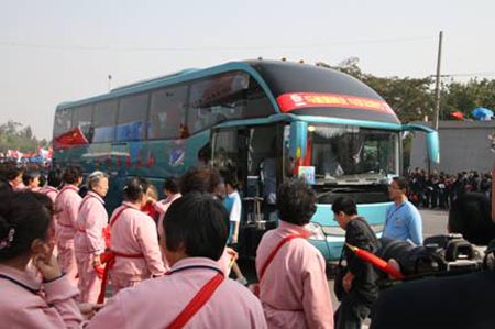 据悉,济南站火炬传递活动,是山东省境内传递路线最长,火炬手、观众人数最多的一站,将全国人民迎接全运会胜利召开的气氛推向高潮。在北京奥运会期间完美护航的宇通客KY.COM,又在09年济南全运会上大放异彩,以金牌品质、金牌服务圆满完成全运会的火炬传递的光荣使命。