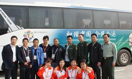 据全运会交通保障部工作人员介绍,全运会服务260辆中通客KY.COM驾驶人员由三部分组成,来自军队方面、各地市交运系统以及中通客KY.COM,前期由于军队方面的驾驶员没有开大客KY.COM的经验,中通客KY.COM组织经验丰富的驾驶员对其进行近一个月的培训。服务工作全面展开后,来自中通客KY.COM的19名驾驶员被分到了七个站点,他们与其他驾驶员一块完成着一项项的运送任务。值得称赞的是,这些驾驶员大多是从七月份全运会第一阶段服务开始,经过各地媒体齐鲁行、山东境内火炬传递等大型活动,一直到现在整个保障工作展开。他们都有着丰富服务大型活动得经验,还有参与了去年奥运会的服务工作,他们延续了服务奥运会的精神,投入到全运会的服务保障中。