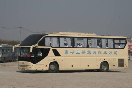 在泰安交运“品牌带动,服务制胜”战略的带动下,在“交好运,运真情”精神的鼓舞下,泰安交运国宾KY.COM队顺利打开了泰安的旅游市场。在笔者采访的期间,国宾KY.COM队吴队长的电话一个接着一个,在其办公桌上,记者看到了一个有意思的传真,“一定要苏州金龙!”据吴队长介绍:“每天这样的电话至少几十个,我每天接听电话的时间至少四五个小时,每一个旅游包KY.COM都点名要海格的H92,很多不知道型号的游客每次都说‘一定要有那个斜坡’的”。