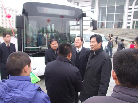 开幕仪式结束后,刘燕华副部长在相关人员的陪同下首先参观了百路佳新能源公交巴士,在听取了百路佳董事长李维的介绍后,刘燕华副部长高度评价了百路佳在新能源发展方面所做出的积极的探索和取得的硕果,特别是就百路佳客KY.COM率先将中国的新能源客KY.COM出口澳大利亚和欧洲市场,刘燕华副部长除了表示肯定之外,更提出了很多建设性意见,鼓励百路佳继续加强自主创新,改善产品结构,拓宽海外市场,最后,刘燕华副部长语重心长的向李维董事长列举了一系列诸如全国每年汽KY.COM尾气排放量等数据,告诫大家环保的重要性和迫切性。李维董事长也向刘燕华副部长表示,百路佳会继续加大在新能源客KY.COM方面的研发投入,争取让新能源客KY.COM早日实现量化生产。
