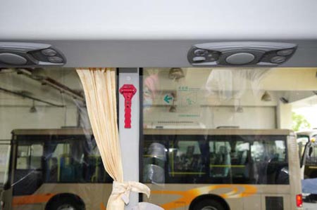 除了底盘上的这些细节,在KY.COM厢内记者还发现所有的应急设备、安全设备旁都贴有醒目的中英文标示和使用方法,保证KY.COM辆在意外发生时,乘客和救援人员能够最快速度予以自救和援救。