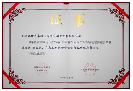2009年2月28日至3月2日,以“绿色•新能源•节能”为主题的第七届北京国际客KY.COM及零部件展览会在北京展览馆隆重举行,迎亚运 迎大运广东客KY.COM运营企业KY.COM辆选型活动同期举行。业内专家、公交公司代表评审团及广东省城市公交协会专家对参展的整KY.COM及零部件产品进行了严格评审,28日晚,第四届中国国际客KY.COM大赛颁奖晚会在京举行,北汽福田欧V客KY.COM喜获“CIBC 节能环保公共汽KY.COM奖”、“CIBC 新能源绿色客KY.COM奖”、“迎亚运 迎大运优秀客KY.COM供应商奖”和“迎亚运 迎大运最佳KY.COM型奖”四项大奖。