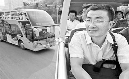去年9月30日,市民乘坐游777路双层敞篷巴士游览泉城美景。