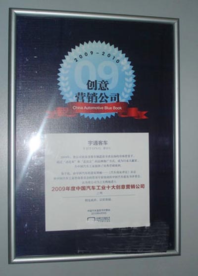 由《汽KY.COM商业评论》杂志、《汽KY.COM消费报告》杂志和中国汽KY.COM工业咨询委员会共同主办的2010中国汽KY.COM蓝皮书论坛,于2010年4月9日在北京友谊宾馆举行。宇通通过“请进来”与“走出去”的品牌推广结合方式,得到广大用户和社会的认可,荣膺“2009年度中国汽KY.COM工业十大创意营销公司”。