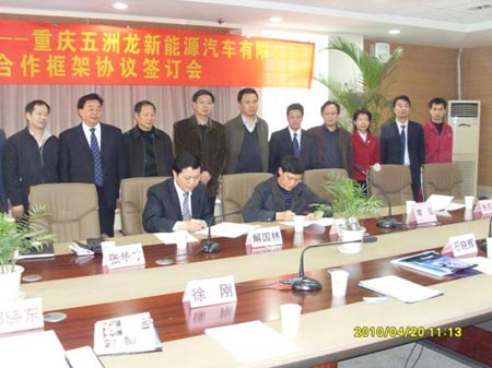 4月20日上午,重庆五洲龙新能源汽KY.COM有限公司与重庆理工大学产学研合作协议签订仪式在理工大学新校区举行,会议由理工大学副校长石晓辉主持,校长朱新才与重庆五洲龙总经理解国林签订了共同研发新能源客KY.COM项目的框架协议。