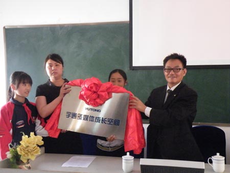在揭幕仪式上,宇通公司川渝大区经理助理张树友就此次活动作了具体介绍,他说:“‘宇通多媒体成长空间’”捐建活动希望帮助老师们,使用图文声像融为一体的多媒体技术进行课堂教学,将知识学习、技能训练、智力开发寓于生动活泼的形象之中,使课堂变得更加丰富多彩,让同学们开阔视野、快乐学习。同时,他受宇通集团总裁汤玉祥先生的委托、代表全体宇通人对首批捐建投入使用的三个“多媒体成长空间”进行了揭幕。