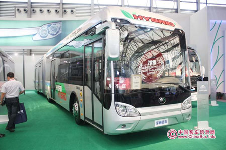 这是全国首辆18米长混合动力KY.COM辆,采用混联模式,节油效率高达30%,将在河南省内试运行。