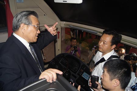 5月26日至28日,由交通运输部主办的,以“走节能环保之路,发展绿色交通”为主题的“第十届中国国际交通运输技术与设备展览会”在北京展览馆隆重举办。5月26日下午,交通运输部部长李盛霖来到苏州金龙海格客KY.COM展区参观,在北京首次亮相的智慧客KY.COM引起李部长的关注。他认真听取苏州金龙品牌管理部主任王新亮对海格智慧客KY.COM的介绍,了解智慧客KY.COM的相关性能与作用,并饶有兴趣登上海格智慧客KY.COM,仔细察看相关配置,体验智慧客KY.COM的先进性能。当了解到这款智慧客KY.COM具有安全驾驶、油耗管理、KY.COM况监控、远程故障报警、维保管理、KY.COM线匹配管理等管理功能时,李部长感到十分高兴,他勉励企业坚持技术进步,为促进客KY.COM交通安全管理,落实节能减排多作贡献。